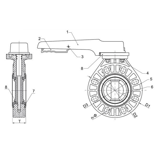 China Ручка-бабочка из ПВДФ D71X-10F DN40-200 1-1/2"-8" стандарт ANSI Suppliers and