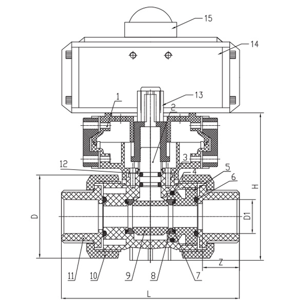 China Пневматический шаровой кран с двойным соединением из ПВХ Q661F-10U, стандарт DN15-100 ГБ Suppliers and